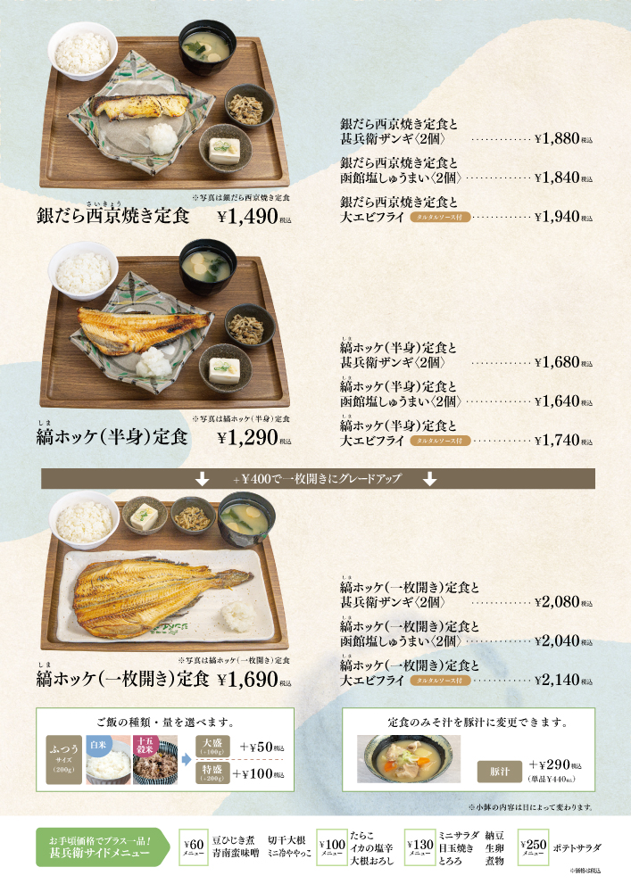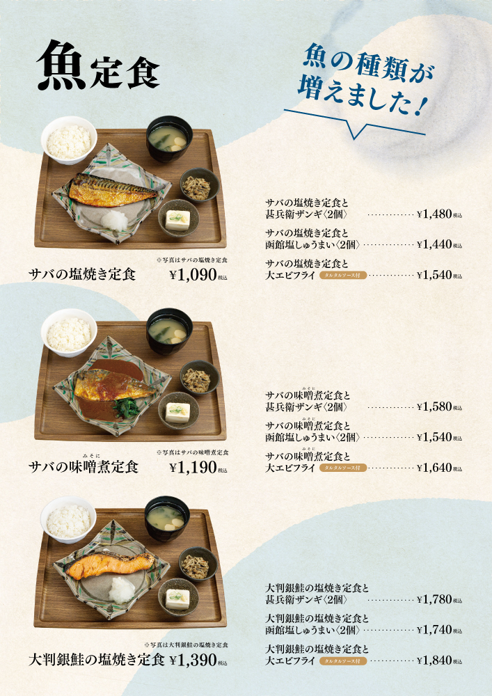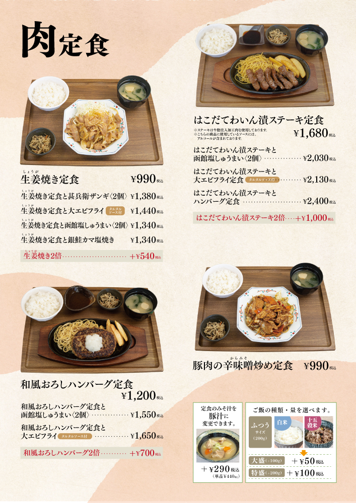 ※定食の価格は全て税込み価格です。